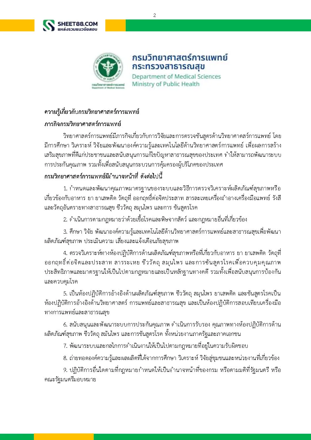 – ความรู้เกี่ยวกับบทบาทหน้าที่ และภารกิจของกรมวิทยาศาสตร์การแพทย์
