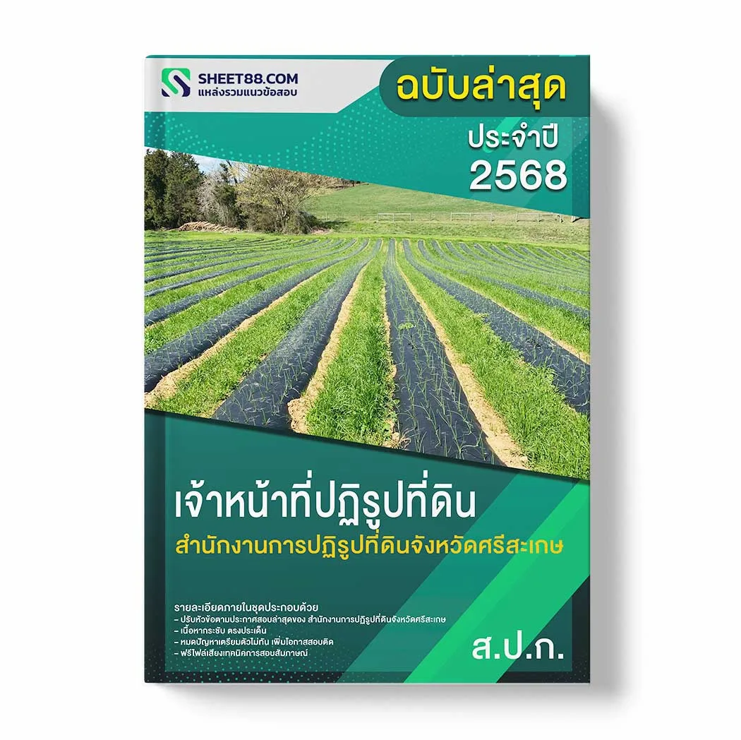 สนใจสั่งซื้อ แนวข้อสอบ เจ้าหน้าที่ปฏิรูปที่ดิน สำนักงานการปฏิรูปที่ดินจังหวัดศรีสะเกษ ติดต่อที่